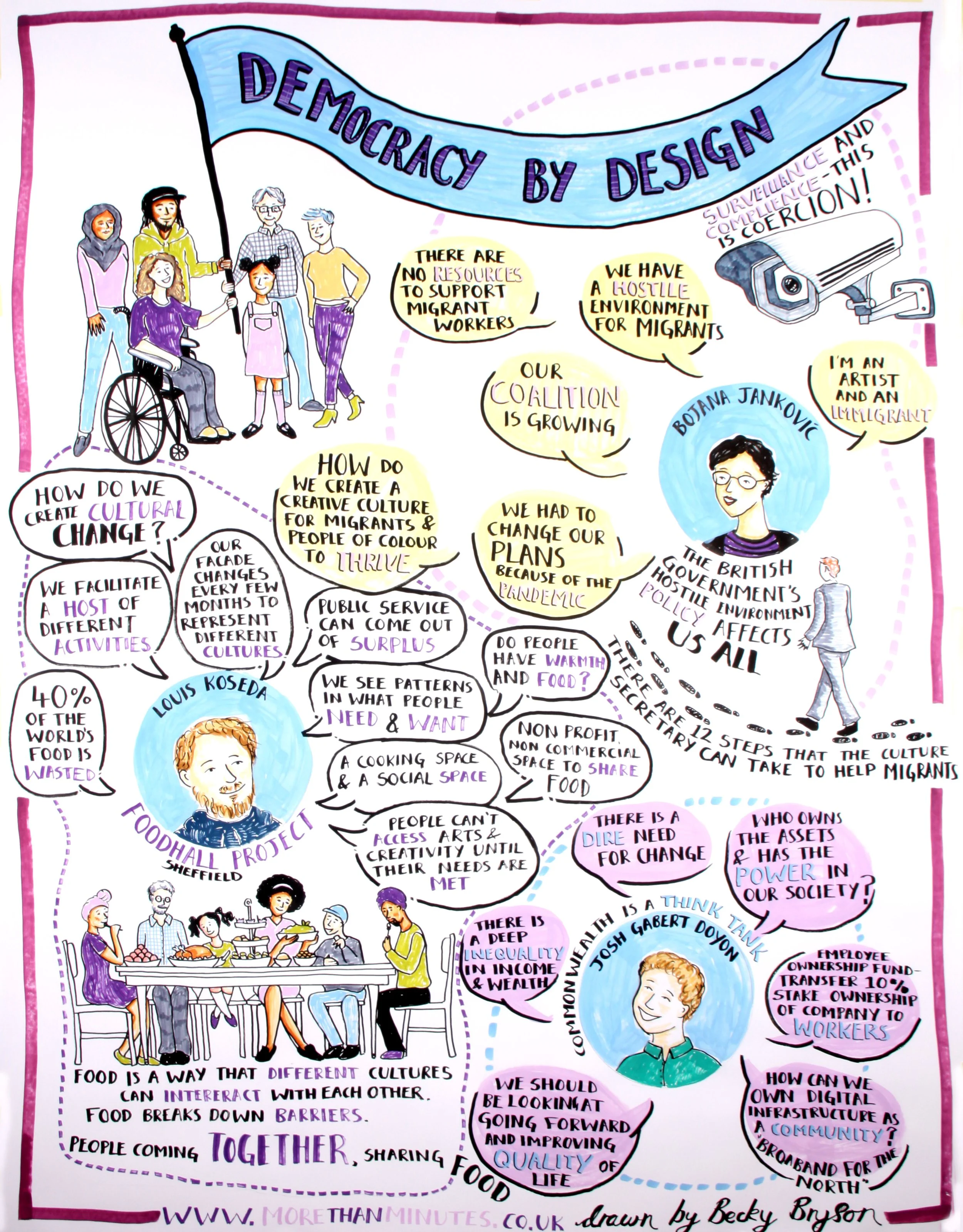 Further information including the programme of contributors, legacy resources including recordings and visual illustrations like the one opposite by Becky Bryson can be found on the conference’s website below.